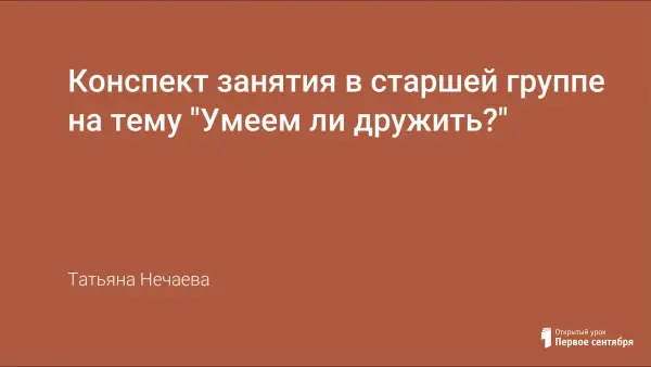 Конспект занятия в старшей группе на тему "Умеем ли дружить?"