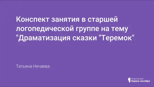Конспект занятия в старшей логопедической группе на тему "Драматизация сказки "Теремок"