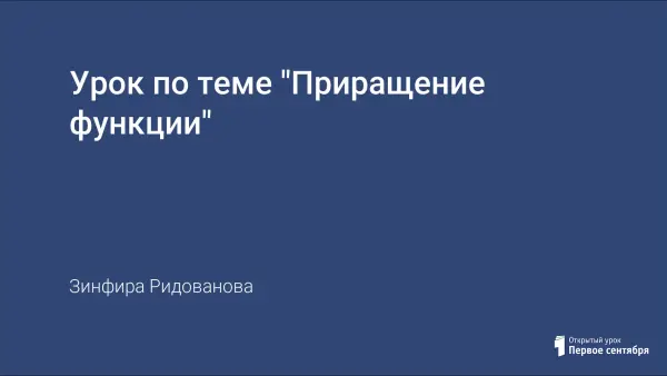 Урок формирует понятия приращения функции и приращения аргумента, секущей, геометрического смысла приращения функции, развивает вычислительные навыки и воспитывает познавательный интерес к предмету.
