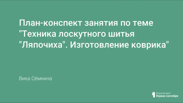 На уроке дети осваивают данную тему через знакомство с отличительными особенностями техники, технологической последовательностью изготовления коврика. Методическая разработка может быть использована в работе учителя технологии общеобразовательной школы и педагогов дополнительного образования.