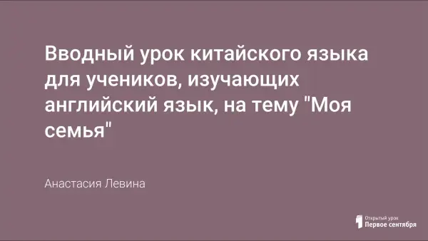 На уроке ученики знакомятся с особенностями китайского языка (письменность, наличие тонов и т.д.), культурой Китая. На протяжении всего урока проводится межпредметная связь, сравнение китайского и английского языков. Изучение лексики по теме: «Моя семья», данные слова наиболее адаптированы и легки для запоминания.