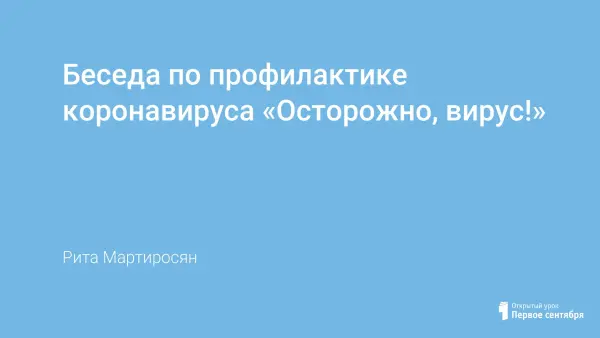 Цель беседы: формировать представление детей о понятии «коронавирус». Задачи: познакомить с путями заражения, с симптоматикой заболевания и профилактическими мерами по недопущению распространения заболевания; формировать бережное и правильное отношение к своему телу.