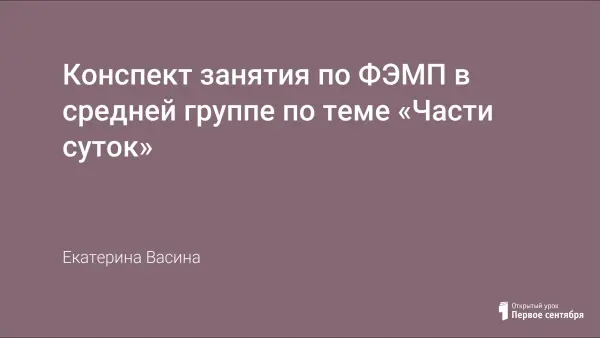 Цель занятия: формирование познавательной активности детей. Задачи: дать понятие детям о том, что утро, день, вечер, ночь составляют сутки; - закреплять умение считать в пределах 5 по образцу и названному числу, формировать представление о равенстве и неравенстве двух групп предметов на основе счета; закреплять умение отвечать на вопрос «Сколько?»; совершенствовать понимание смысла пространственных отношений (под, за, на, около, между).