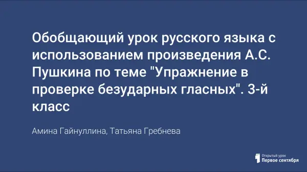 Обобщающий урок русского языка с использованием произведения А.С. Пушкина по теме "Упражнение в проверке безударных гласных". 3-й класс