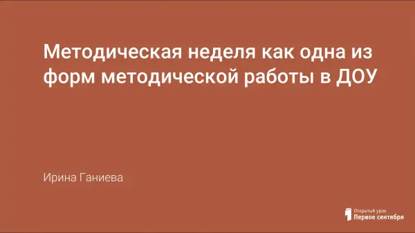 В данной статье описывается такая форма работы, как "Методическая неделя". Основная цель – систематизировать знания педагогов по определенной теме, передать педагогический опыт, привлечь всех специалистов к работе по единой теме.