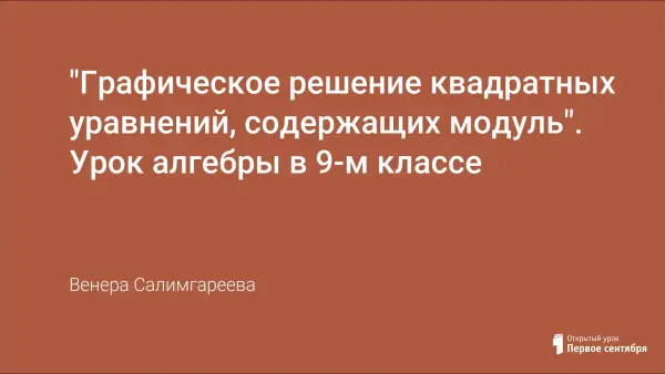 В ходе данного урока идёт повторение построения графика квадратичной функции и закрепление навыков построения графиков функций вида <span class="math">y = f(|x|) и y = |f(|x|)|</span>. Этот урок можно провести как при решении уравнений, содержащих модуль, так и при решении уравнений, содержащих параметры. По такой схеме можно повторить и закрепить навыки решения уравнений, содержащих другие функции.