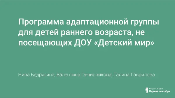 Программа разработана для педагогов, воспитателей, для оказания педагогической и психологической помощи родителям, воспитывающих детей в домашних условиях, облегчить вхождения в коллектив сверстников. Повысить престиж детского сада №4 «Теремок» г.Белово Кемеровской области.