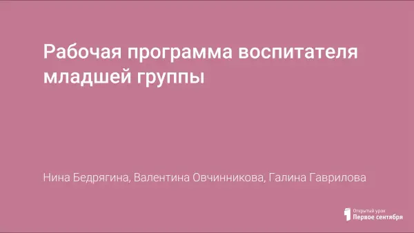 Рабочая программа обеспечивает разностороннее развитие воспитанников в возрасте от 2 до 4 лет с учетом их возрастных и индивидуальных особенностей по основным направлениям – физическому, социально-личностному, познавательно-речевому и художественно-эстетическому Программа обеспечивает достижение воспитанниками готовности к школе, ведётся на русском языке. Программа построена на позициях гуманно-личностного отношения к ребенку и направлена на его всестороннее развитие, формирование общечеловеческих ценностей, а также способностей и компетенций.
