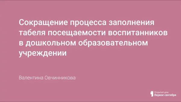 Представлена презентация о том, как сократить процесс заполнения табеля посещаемости воспитанников в дошкольном образовательном учреждении.