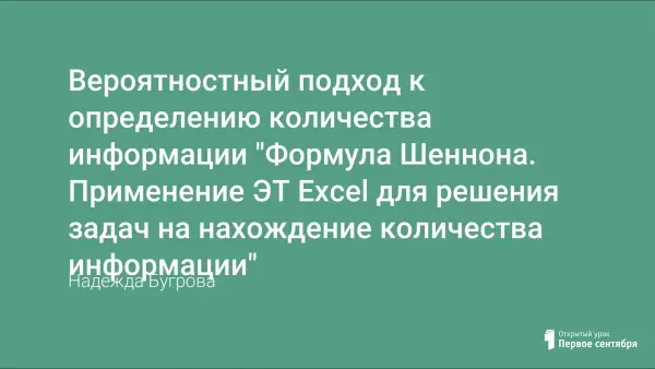 Разработка уроков по информатике в 10-м классе. После ознакомления с теоретическим материалом ученикам предлагается создать в Excel информационную модель для автоматизации процесса вычислений в задачах на нахождение количества информации.