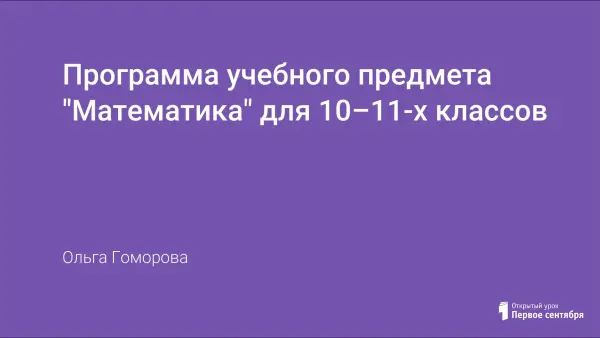 Программа учебного предмета «Математика» для учащихся 10−11-х классов (408 часов; 6 часов в неделю в каждом классе) составлена на основе Федерального государственного стандарта основного общего образования, примерной программы основного общего образования по математике (авторы: Ш.А. Алимов, Л.С. Атанасян). Уточняет содержание предметных тем образовательного стандарта и дает распределение учебных часов по разделам курса.