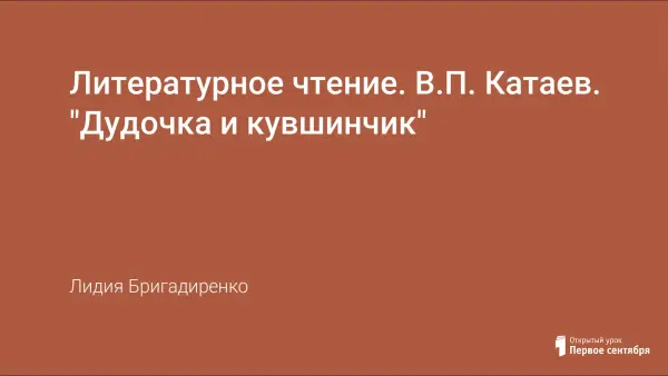 На уроке дети знакомятся с рассказом В.П. Катаева «Дудочка и кувшинчик», краткой биографией автора. Урок способствует развитию навыков быстрого, правильного и осознанного чтения, произвольного внимания и умения концентрироваться.