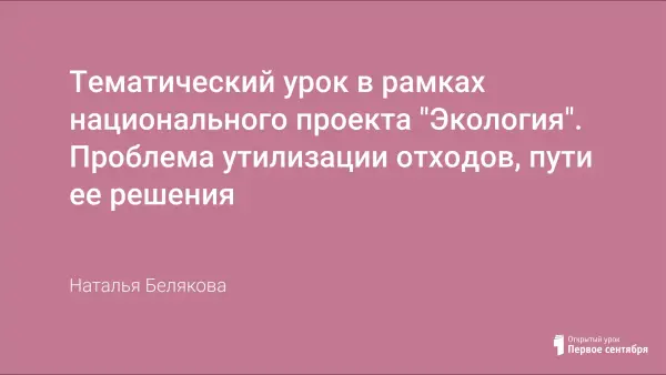 Тематический урок в рамках национального проекта "Экология". Проблема утилизации отходов, пути ее решения