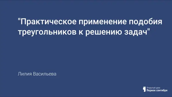 Цель данного урока – показать практическую направленность темы «Подобие треугольников». Урок проводится с применением интерактивной доски, что способствует развитию и укреплению интереса к предмету. Разбираются примеры использования подобия треугольников для измерительных работ на местности.