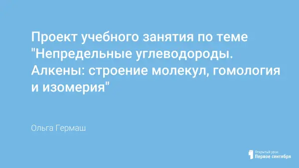 Проект учебного занятия по теме "Непредельные углеводороды. Алкены: строение молекул, гомология и изомерия"