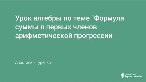 Комбинированный урок, включающий в себя первичное изучение и закрепление формулы суммы n первых членов арифметической прогрессии, а также проверку знания определения арифметической прогрессии и формулы ее n–го члена, умения их использовать.