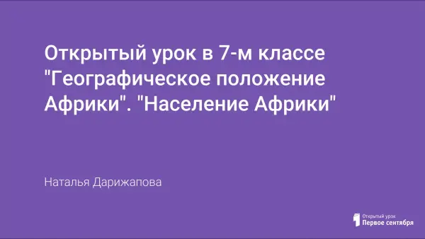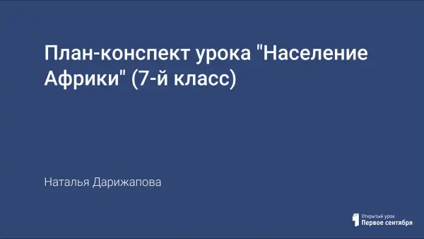 Образовательные задачи урока: обеспечить усвоение новой темы. Продолжить формирование знаний о материках. Углубить знания учащихся об особенностях народов Африки, истории формирования состава населения. Начать формирование знаний о плотности населения, рассмотреть особенности расселения, размещения населения по территории материка.