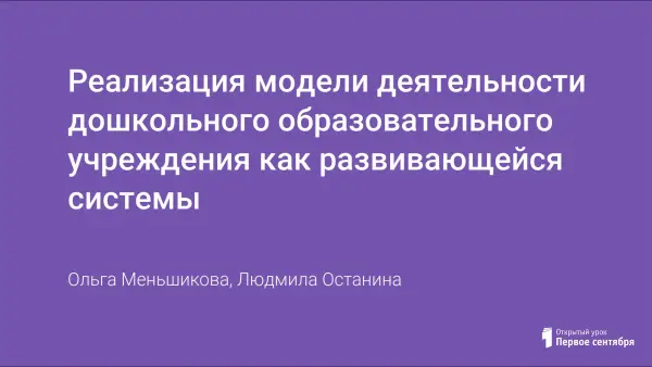 Реализация модели деятельности дошкольного образовательного учреждения как развивающейся системы