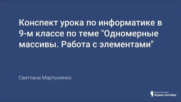 На уроке дается понятие массива, типа массива, индекса. Дети учатся работать по заданному алгоритму, применять знания при решении задач, расширяется кругозор в области использования массивов, развивается логическое мышление. Урок прививает учащимся навык самостоятельности в работе, чувство уважения к науке.