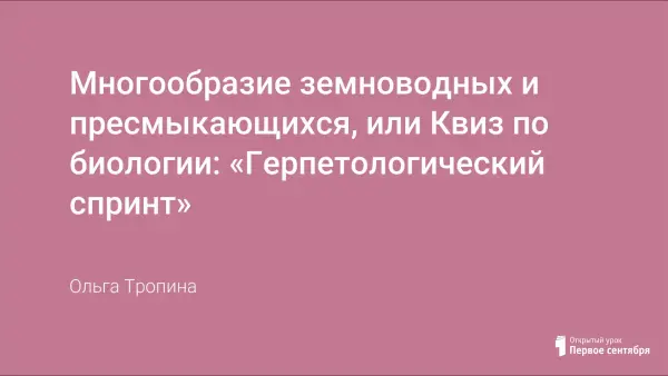 Цель урока: обобщение и расширение знаний о многообразии земноводных и пресмыкающихся.