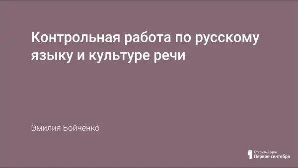 Речевая культура – один из компонентов общей культуры человека. Как и другие слагаемые культуры, она прививается, воспитывается и требует постоянного совершенствования. Данная контрольная работа предназначена для студентов 2-го курса, обучающихся по программе СПО. Может быть использована для подготовки к ЕГЭ по русскому языку.