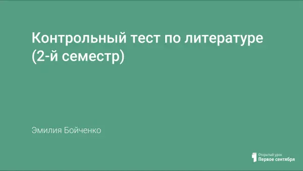 Контрольная работа по литературе за 2-й семестр 1-го курса. Она подводит итог изучению литературы ХХ в. Может быть использована для учащихся 11-го класса.
