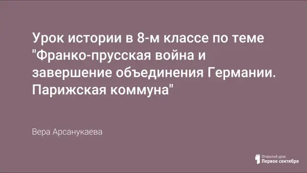 Урок истории в 8-м классе по теме "Франко-прусская война и завершение объединения Германии. Парижская коммуна"