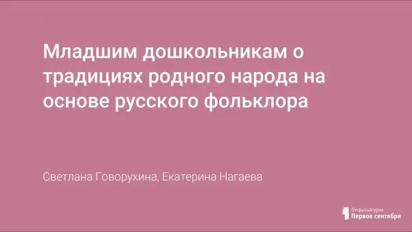Младшим дошкольникам о традициях родного народа на основе русского фольклора