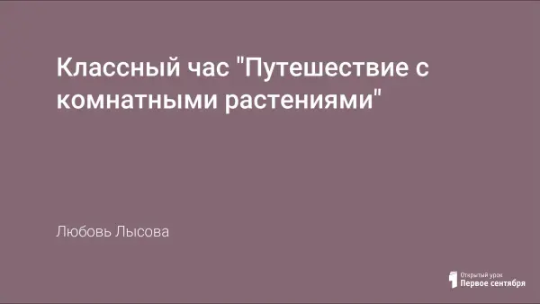Классный час был подготовлен с целью ознакомления детей с разнообразием комнатных растений, их произрастанием в дикой природе, необходимыми условиями для жизни. Данное занятие направлено на расширение знаний детей, развитие интереса к окружающей природе, воспитание чувства прекрасного.