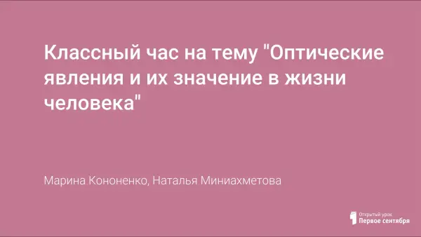 Классный час на тему "Оптические явления и их значение в жизни человека"