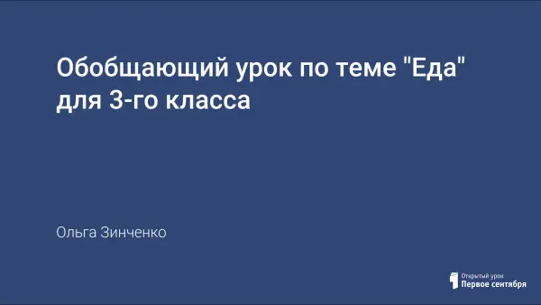 Обобщающий урок был проведен в 3-м классе, после того как учащиеся выучили лексический материал по теме "Еда" и научились применять полученные знания на практике (при составлении диалогов, монологических высказываний объемом 3–4 предложения, чтении текстов).
