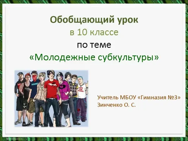Цель урока: обобщить знания учащихся по теме «Виды молодежных субкультур». Учащиеся работают с различными заданиями в формате ЕГЭ. Развиваются лексические навыки речи; аудирования с извлечением информации и детального понимания содержания.