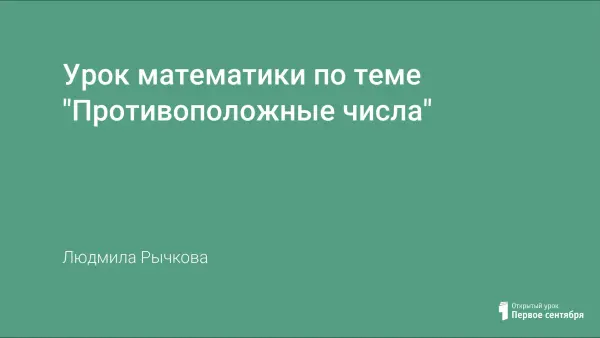 В ходе урока учащиеся узнают, какие числа называются противоположными; учатся находить числа, противоположные данным. В начале объяснения нового материала перед учащимися ставится проблема в форме задачи-сказки, решая которую ребята приходят к понятию противоположных чисел. Обсуждение сопровождается показом презентации.