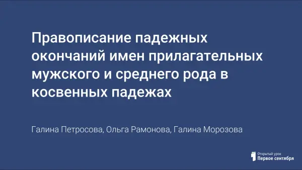 Правописание падежных окончаний имен прилагательных мужского и среднего рода в косвенных падежах