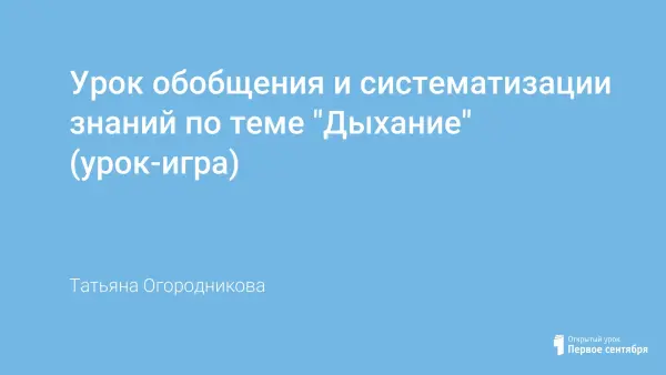 Урок-игра проводится для учащихся 8-x классов после завершения изучения темы. Данный урок позволяет проверить, закрепить и обобщить знания учащихся о строении и функционировании органов дыхания и мерах оказания первой помощи при нарушениях дыхания; воспитывает ответственное отношение к своему здоровью.