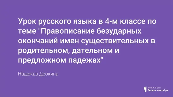 На уроке закрепляются знания о существенных признаках, по которым распознаются родительный, дательный и предложный падежи, формируются общие приёмы умственных действий при написании безударных падежных окончаний имён существительных. Урок воспитывает потребность в здоровом образе жизни.
