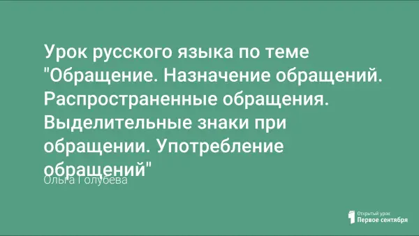 Цель урока: систематизировать и обобщить знания учащихся об обращении; познакомить со способами выражения обращения, правилами выделения обращения в устной речи (звательная интонация) и на письме (выделительные знаки препинания); находить в предложении обращение, употреблять его с учетом речевой ситуации.