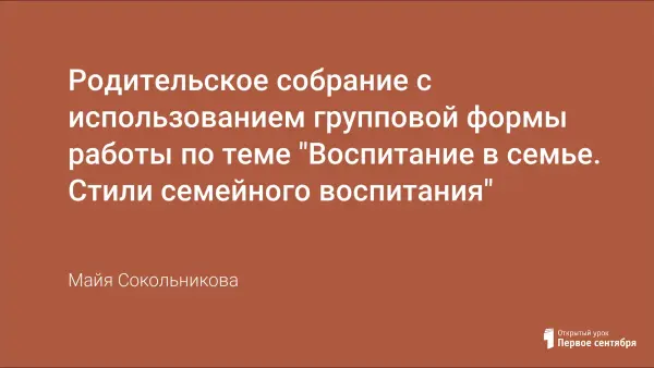 Родительское собрание с использованием групповой формы работы по теме "Воспитание в семье. Стили семейного воспитания"