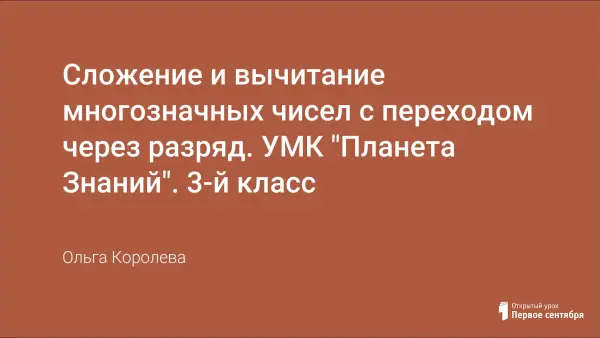 Урок помогает обобщить и проверить знания и умения учащихся в решении задач на движение, умножение и деление многозначных чисел.