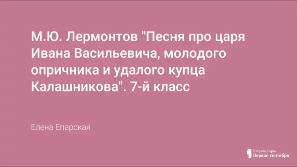 Цель уроков - раскрыть глубокий нравственный смысл "Песни..."; дать представление об эпохе Ивана Грозного, опричниках; формировать умение анализировать и интерпретировать текст поэмы, выделять композиционные части, характеризовать поступки героев, выразительно читать поэму, строить собственные суждения.