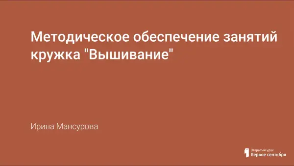 В работе представлена краткая история возникновения и развития вышивания, календарно-тематический план и содержание программы работы кружка.