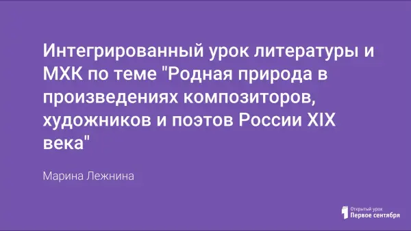 На уроке литературы по традиционной программе в 6-м классе дети знакомятся с новой темой "Родная природа в произведениях композиторов, художников, поэтов России XIX века". Обучаемым дается общее представление о русской пейзажной лирике, о музыке и живописи России XIX века, формируются эстетическая отзывчивость к русской поэзии, закрепляется умение выразительного чтения.