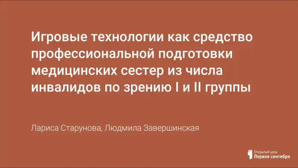 Игровые технологии как средство профессиональной подготовки медицинских сестер из числа инвалидов по зрению I и II группы