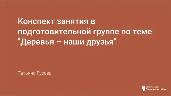 Задачи занятия: закрепить и уточнить знания о названиях и разновидностях деревьев; выделить роль деревьев в жизни человека; развивать речь детей через ответы на вопросы, исполнение песен и стихов; воспитывать бережное отношение к природе.