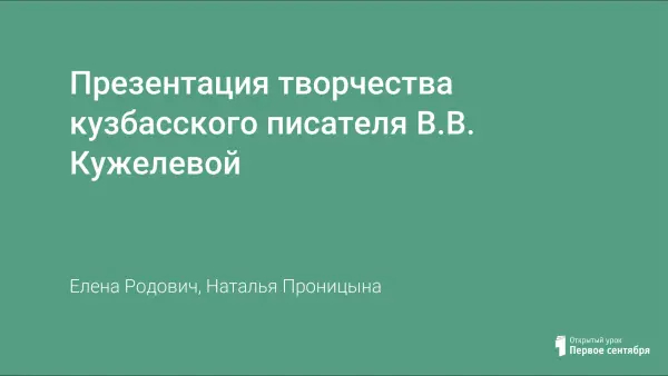 Презентация творчества кузбасского писателя В.В. Кужелевой