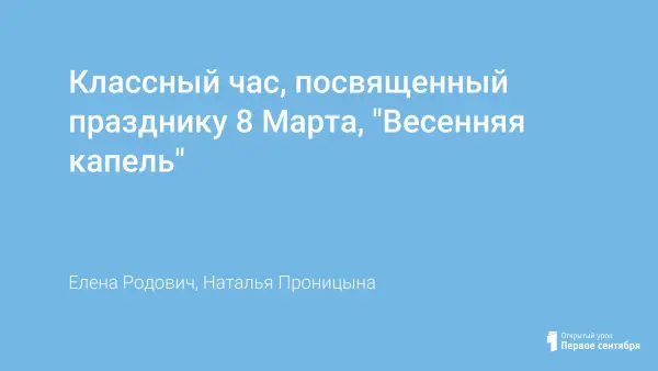 Классный час, посвященный празднику 8 Марта, "Весенняя капель"