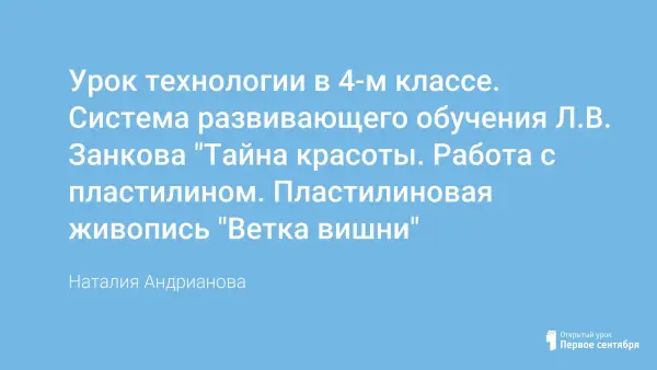 В системе развивающего обучения Л.В. Занкова технология занимает одно из главенствующих мест среди учебных дисциплин. Уроки технологии способствуют развитию у учащихся познавательного интереса, расширению кругозора, творческого мышления, воображения, трудолюбия, аккуратности.
