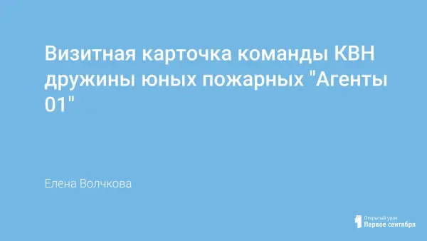 Визитная карточка команды создана в интересной форме, в ней есть доступность и творческое выражение. Цель: руководителям представить команду на школьных и городских конкурсах по пожарной безопасности.