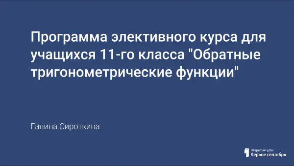 Цель данного элективного курса – повысить математическую культуру учащихся в рамках школьной программы по математике, дополнить школьный материал, связанный с обратными тригонометрическими функциями, представить его систематизацию и помочь старшеклассникам успешно сдать ЕГЭ по математике.