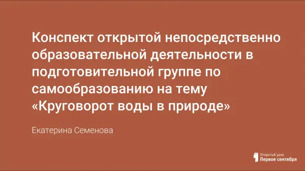 Цель занятия: познакомить с явлением круговорота воды в природе. Задачи: развивать познавательную активность детей; познакомить детей с круговоротом воды в природе, объяснить причину выпадения осадков; расширить представления детей о значении и свойствах воды; развивать социальные навыки у детей, доказывать правильность своего мнения; развивать логическое мышление; совершенствовать навыки экспериментальной деятельности.